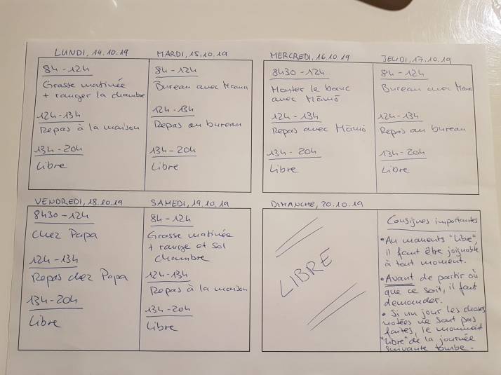 Ich habe für Sohnemann ein Planning für die 1. Ferienwoche errichtet (ist halt auf französisch, aber nicht kompliziert) :