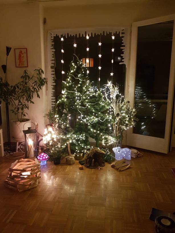 Am 24.12.19 hab ich natürlich Mama eingeladen. Vorgesehen war, dass wir im Wald ein Fondue machen. Doch leider spielte das Wetter überhaupt nicht mit. Also habe ich kurzerhand den Wald nach Hause geholt :
