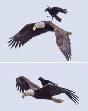 Wusstest Du, dass der einzige Vogel, der es wagt, einen Adler zu stören, die Krähe ist?
