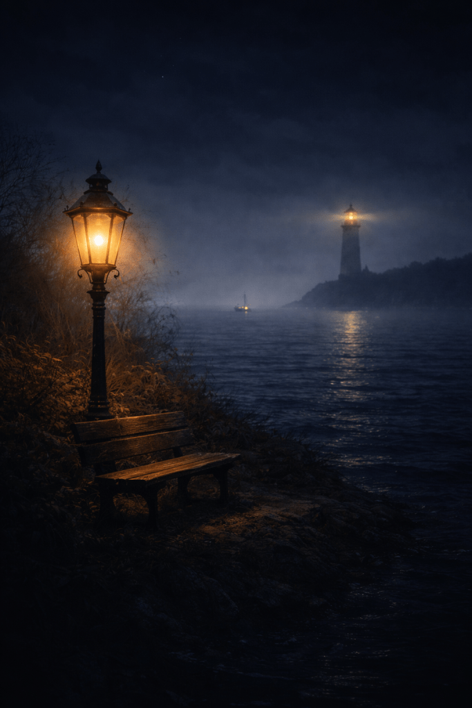 Ein Leuchtturm steht fest an seinem Platz und sendet sein Licht hinaus in die Nacht. Nicht laut, nicht aufdringlich. Einfach da. Für die Schiffe, die draussen unterwegs sind.