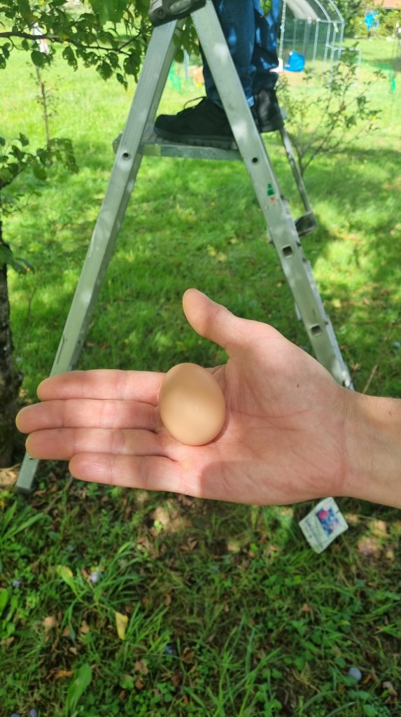Lucky4 von 8 HühnernClaudius beim Zwetschgen pflückenHannah das HuhngrillierenKartoffelsalat