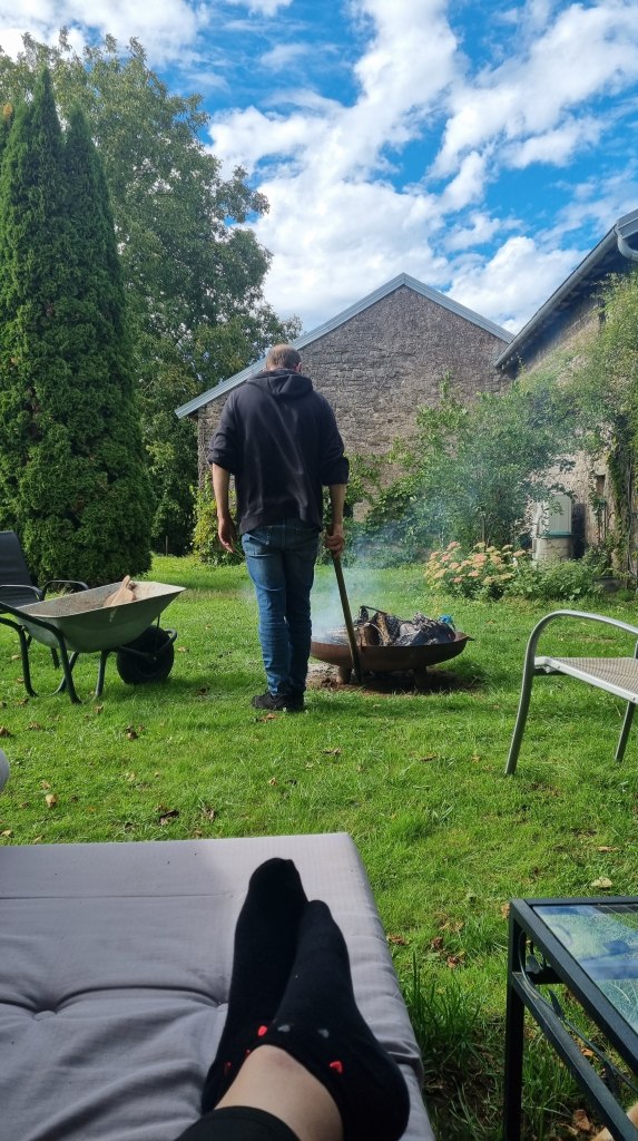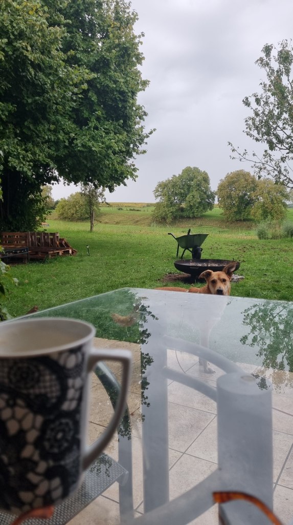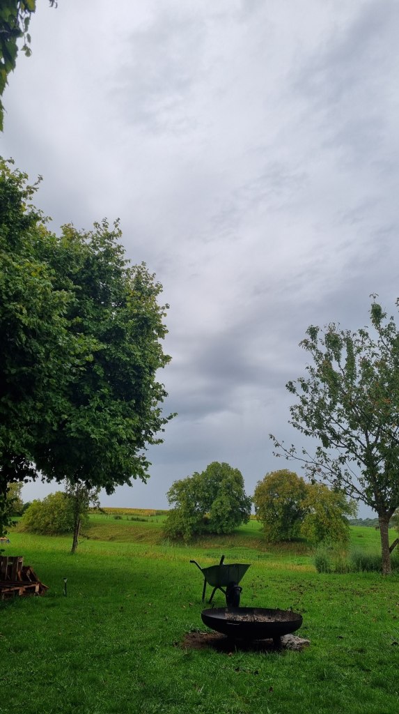 Der Donnerstag hingegen war verregnet. Wir sassen am Morgen trotzdem auf der Terrasse, lauschten dem gleichmässigen Trommeln des Regens und machten später erneut Feuer im Kamin. Am frühen Nachmittag traten wir die Rückfahrt an – leider mit Stau, sodass sich die Heimfahrt zog. In Yverdon legten wir noch einen Halt ein: Ich habe mir ein Fahrrad gekauft. Ein gebrauchtes zwar, aber wie neu – und das Beste daran: es ist gelb! 😀 Zu Hause angekommen, wartete schon mein Sohn, und wir assen gemeinsam zu Abend.