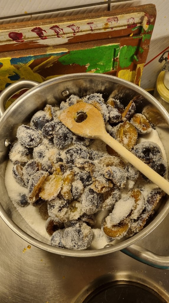 Am Freitagmorgen hatte ich Physiotherapie, danach fuhr Claudius wieder nach Hause. Der Samstag war mein üblicher Wäschetag, nachmittags gönnte ich mir Ruhe, und abends schaute ich bei meiner Mutter vorbei – mit 1,5 Kilo Zwetschgen im Gepäck. Der Sonntag verlief ruhig, bevor ich heute wieder in den Arbeitsalltag startete.